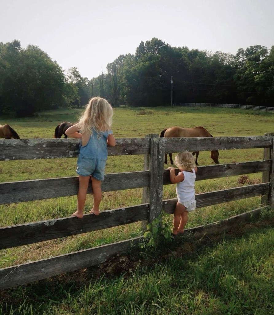 لون اخضر و طفلي يرتدي اللون الازرق و ابنتي الصُغرى لديها شعر قصير مسرح بطريقة لطيفه للغايه عمرها سنتين و نصف و تركض مرتدياً فستاناً براقاً اصفر تركض خلف اخاها الذي خرج للعب مع الخيول ، تذهب حبيبة روح امها ل فيروزه الفرس خاصتي لتلعب معها لانها تغار عليها من اخاها تقول له اذهب لتعلب مع حصان البابا ، ليخرج زوجي من منزلنا و يقول هيا ايها البطل الذي سيصبح فارساً مغواراً هيا تعال معي ، لقد كنت اشاهدهم و اضحك بصوت مرتفع ، كنت ارتدي فستاناً ربيعياً فيه الكثير من الورود